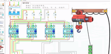 2、接著再看下器材,空氣斷路器,交流接觸器,啟動按鈕、限位行程開關等,按照擺放規則放置到萬用表操作面板中,分析下實物接線圖,看下各個功能的線圈串聯是否正確。